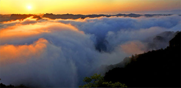 架云楼是云台山一处有特色的峰丛景观,它位于排云关对面,形似城墙碟楼,又似笔架。架云楼就是在地表水沿着岩层裂缝、空隙不断溶蚀、侵蚀下,上部岩层支撑不住而崩塌,从而形成了形如笔架的台状峰丛。