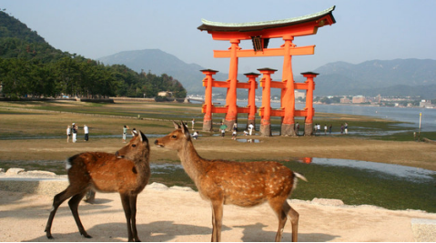 在日本,神的使者不止是狐狸,还有鹿。它们被指定为国家天然纪念物,人人奉为神灵。多么不可多得的灵鹿!它们一直忠诚地看守着历史悠久的宫岛,使得这里的一切充满了迷惑的神秘感,让人不由自主地敬畏。