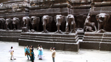 乘车从奥兰加巴德向北104公里,向西29公里,进入德干高原西北部,穿过连绵不断的玉米与大麦田,再沿山坡走一段弯曲而颠簸的山路,便来到举世闻名的世间杰作阿旃陀和埃洛拉石窟。1983年两座石窟群同被列入世界遗产名录,与泰姬陵一起成为印度首批入选名录的文化遗产。
