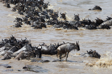 我们来晚了一星期,马拉河的大迁徙已经结束了。此时的马拉河有点让我们失望,河里到处是角马的尸体,天上盘旋着黑压压的秃鹫,河水臭不可闻。河中能看到很多河马和巨大的鳄鱼。等待迁徙的动物们通常会在河边排队,往往排个几天才渡河,因此,必须足够幸运才能看到壮观的野生动物大迁徙。