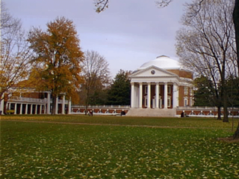 在生命的最后19年中,杰斐逊在夏洛特维尔将自己的智慧、卓识和人人生而平等的自由精神,编织进了一系列富有新古典主义风格并有多处创新的大学建筑群。外形仿罗马万神殿的圆形殿是校园的中心,其前方两侧对列的是10座外形迥异的馆阁(教授住所兼教室),学生寝室则分布在这些馆阁之间。这三列建筑环绕的是一片长方形的草坪,其上古木苍翠。寝室外侧还分列10个布局各异的花园,花园外侧则是后勤房屋。这便是弗吉尼亚大学的最初布局,直到今天这里依旧是这所大学的核心地带。