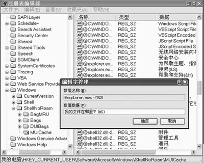 小贴士:在注册表中,你会发现“开始”菜单及其二级菜单中更多选项的信息,例如“@C:WINDOWSsystem32SHELL32.dll,-93”是“打印机和传真”,直接看显示的数据一目了然。我们只要修改一下相应键值便可以打造出个性化的开始菜单了。修改是即时生效的,所以你不妨逐一修改看看效果。此修改不只作用于“开始”菜单,系统其他位置的该应用程序的名称也可能会改变哦。