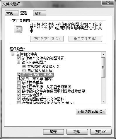 当我们使用Windows XP或者Windows 9X系统时,要同时选中不相邻的多个文件通常需要Ctrl键的支持。可习惯用鼠标的人总觉得用键盘太麻烦,如果能单用鼠标解决多重选择就好了。这个在Vista系统中其实不难实现:打开[计算机],按Alt键“呼”出菜单,单击[工具]→[文件夹选项]→[查看],在“使用复选框以选择项”前的方框内打上对钩(如图4),再看看你的文件夹窗口,是不是可以用鼠标随意选择文件了?