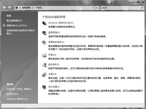 右键点击桌面选择[个性化],打开“个性化外观和声音”窗口(如图3)。