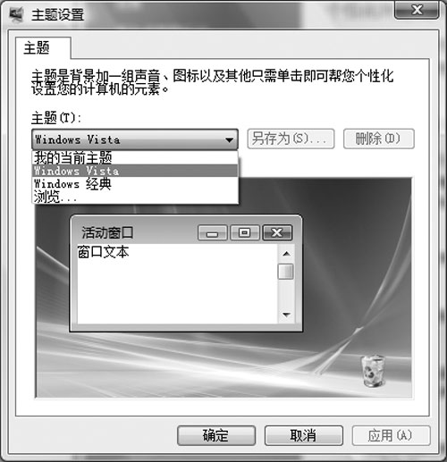 在打开的对话框的“主题”下拉框中,选择[Windows Vista]作为当前主题(如图4)。