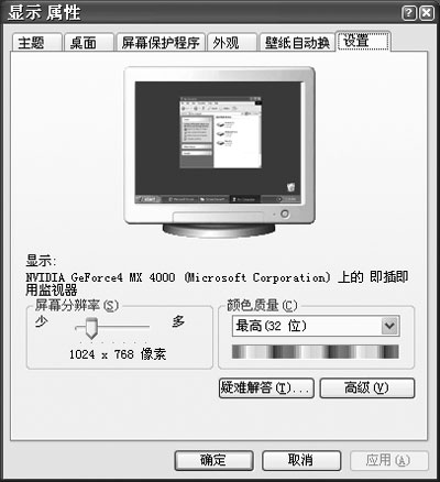 第一步:进入“显示属性”面板,选取[设置]→[高级](如图3)。