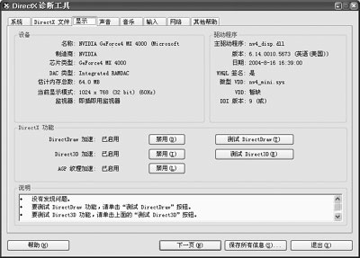 小贴士:如果淀粉们的显卡不支持3D加速功能,可从网上下载最新的驱动程序,更新显卡驱动,使显卡支持DirectX的3D加速功能。