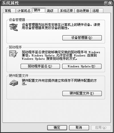 第二步:双击“系统”,进入“系统属性”对话框,选择[硬件]→[设备管理器](如图8),进入“设备管理器”对话框。