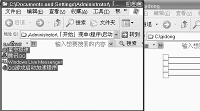 第三步:选中“「开始」菜单程序启动”文件夹中的所有启动项目的快捷方式,将其剪切到“C:qidong”文件夹中(如图2)。