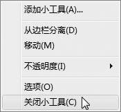 如果不喜欢某个小工具,将其关掉也很容易。将鼠标移至需要关闭的小工具处,在其右侧会出现“×”按钮(如图4),点一下就OK了。或者在小工具上单击鼠标右键,选择[关闭小工具](如图5)。
