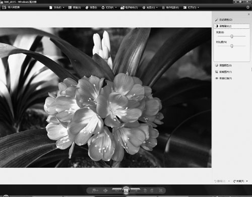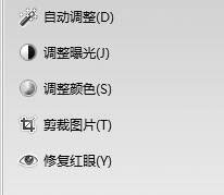 鼠标左键双击照片,然后单击Windows照片库窗口顶部的[修复],窗口右侧会出现一个修复工具面板(如图1)—自动调整、调整曝光、调整颜色、剪裁图片、修复红眼,功能不少哦!