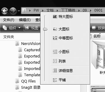 说明:这个窗口跟XP系统的主窗口相同。单击工具栏上的[视图]图标,可以调整主窗口内图标的大小(如图2)。在工具栏上,可以很方便地看到选中文件的默认打开程序。如果想用其他程序打开,可以单击程序旁边的倒三角按钮。