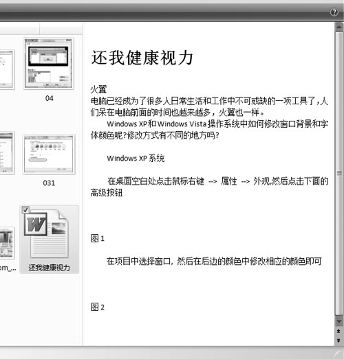 说明:Vista资源管理器的“预览”功能十分强大,不仅仅能预览图片,就连Word文件也可以一览“有”余^_^(如图3)。预览窗口的大小可以通过拖动边界调节。