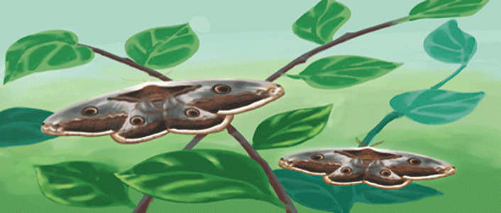 约莫在晚上9点钟,大多数虫类都进入梦乡,应约前来的雄性大孔雀蛾接踵而至。不久,数十只小鸟一样大的蛾子就会挤满这里,它们都迫不及待地向这位大孔雀蛾姑娘致意。雌蛾是上午诞生的,但它一出世就做好了繁殖后代的准备,它靠一种“神秘力量”——外激素来召唤同伴。