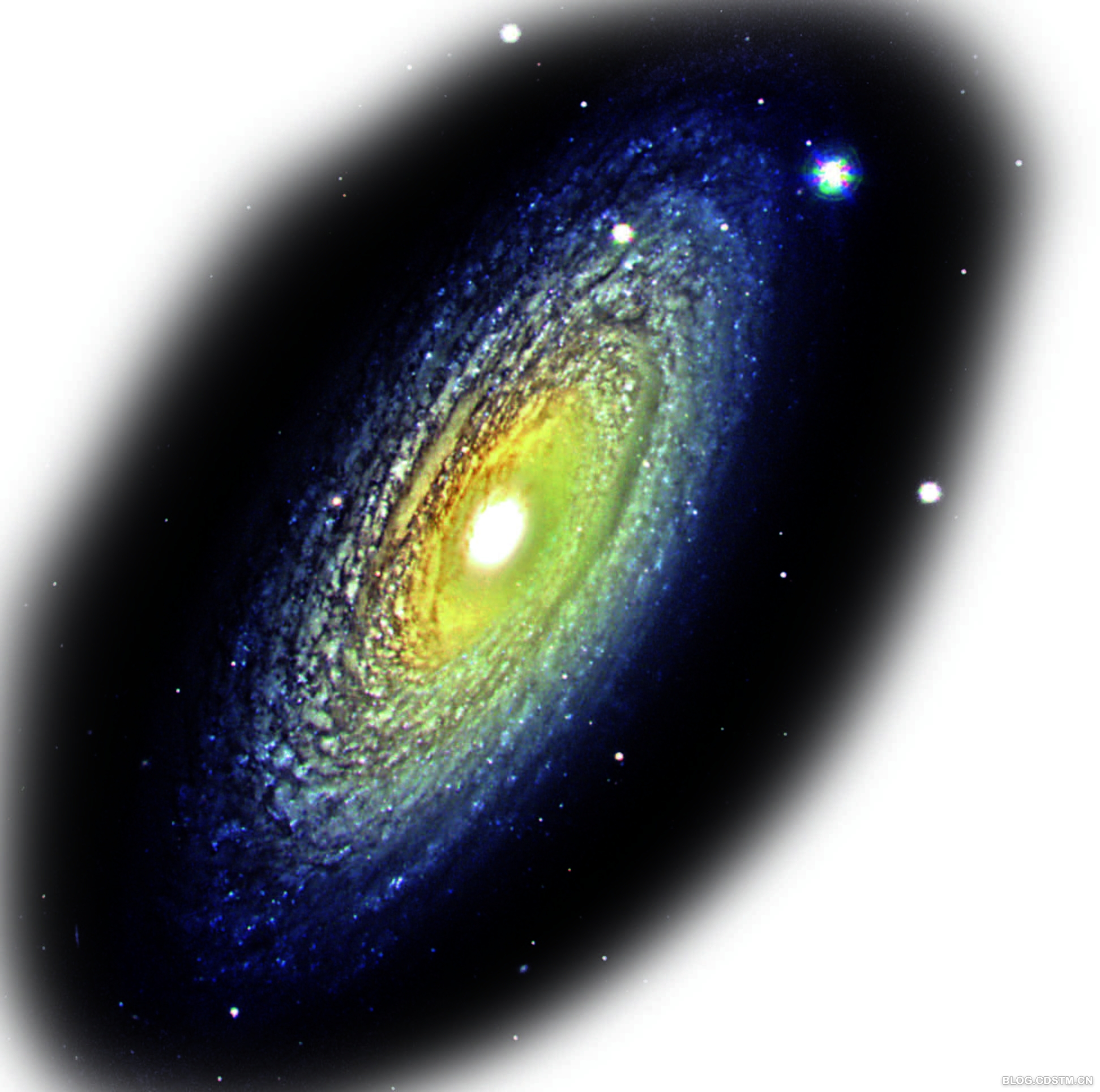 各地的风车有着不同的风情,宇宙中的大风车们也展现着自己不同的风姿。然而无论什么旋涡星系都有类似的结构:旋涡星系的中央像是一个形如煎饼的“核”,从星系中央部分向外,伸出两条或者更多的明亮光带,螺旋状缠卷在一起,它们被称作“旋臂”,也就是大风车的叶片。
