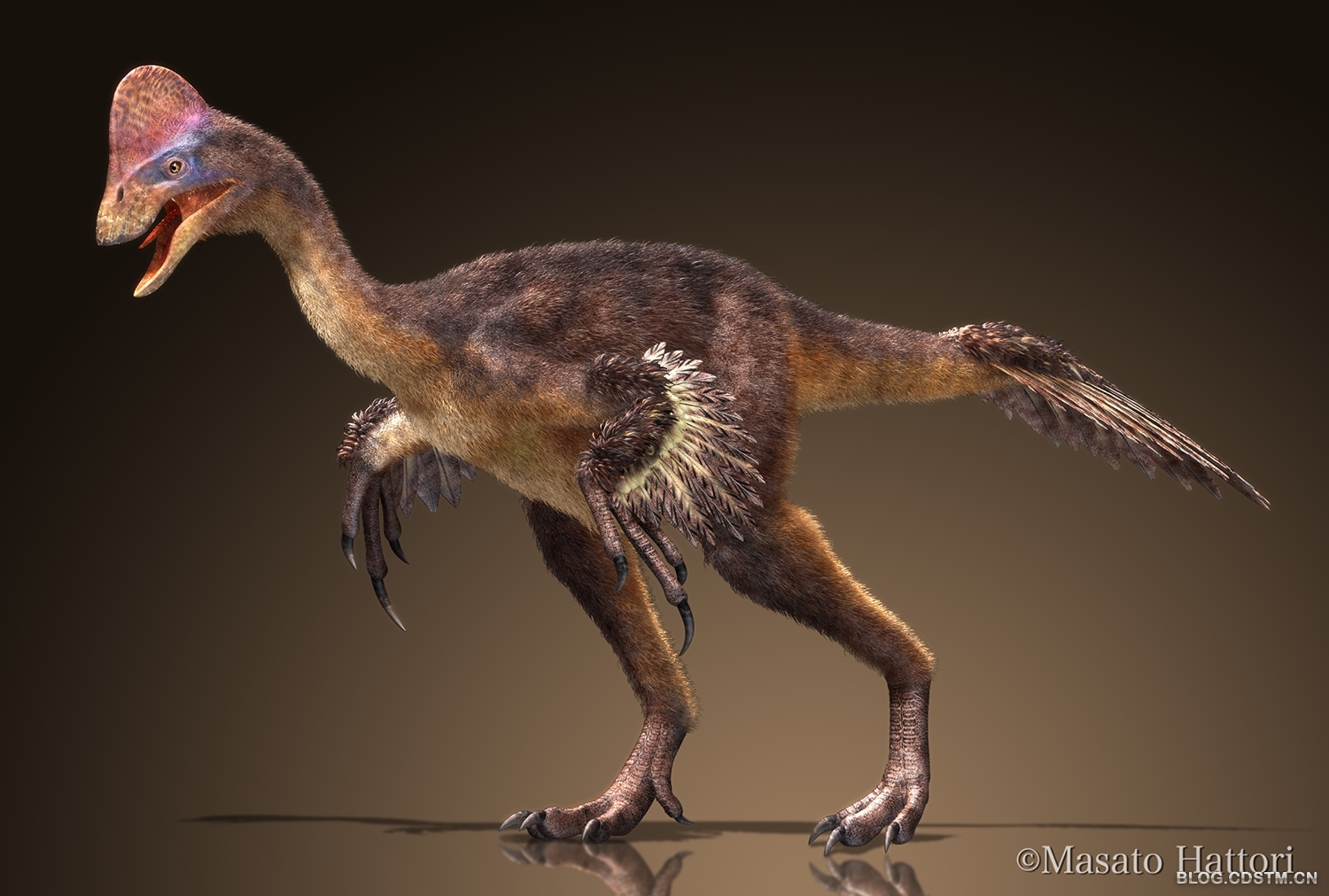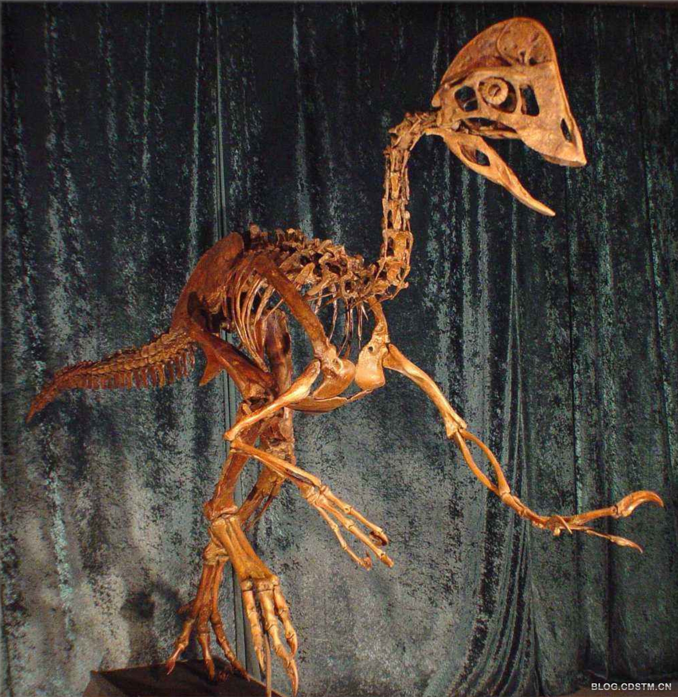 窃蛋龙生活在白垩纪晚期,身长约2米,大小如鸵鸟,长有尖爪,长尾。研究人员推测它的运动能力应该很强,奔跑速度很快,可以像袋鼠一样用坚韧的尾巴保持身体的平衡。