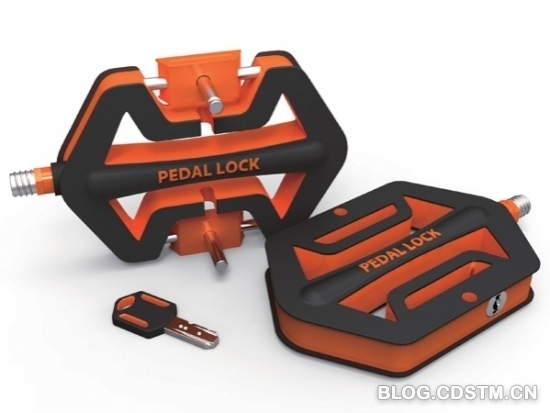 和车把锁一样,这种锁也是就“车”取材,只不过改造对象换成了脚蹬子!把车的两个脚踏板取下,使它们夹紧车轮然后用钥匙咔擦一锁,自行车就被锁死了!而且一旦小偷破坏掉这把锁,他同样也会因无法骑着脏物溜走而懊悔至极!