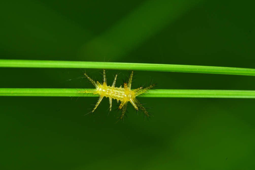 刺蛾幼虫就是我们平时说的洋辣子,几乎全身都密布着有毒的枝刺,看起来就像是在叶片上爬动的小刺猬。刺蛾幼虫种类繁多,颜色也很鲜亮,仔细看的话,这些小家伙很漂亮的,有点像海里的海蛞蝓。从小喜欢爬树摘果子的我可是没少被它毒害,起先总以为是被树上的尖刺扎到了,后来又疼又痒,才明白是中了刺蛾的招儿。