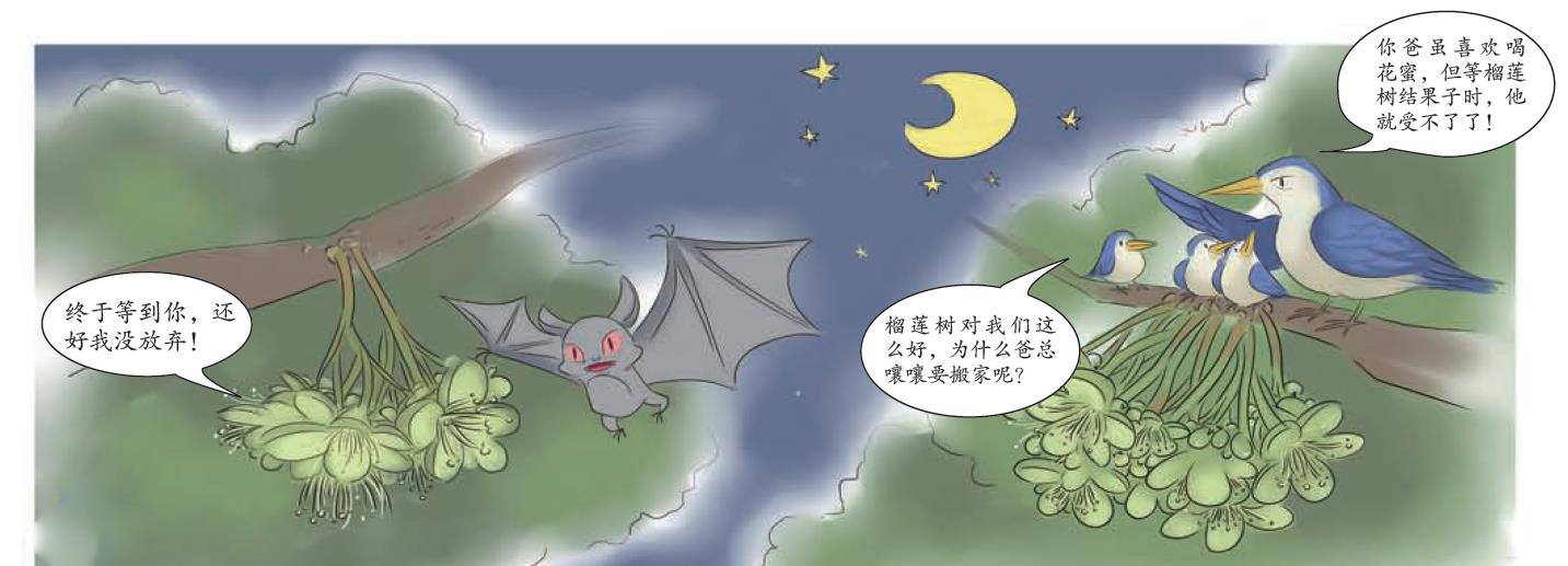 A:生活在热带雨林里的许多树木都会出现一种叫作“老茎生花”的现象,即花、果都直接从老茎上生长出来。这是因为在植被茂密、竞争激烈的热带雨林中,植物必须让自己的树冠长得比旁边的植物都高,才能争夺到充足的阳光。当许多植物这样做时,整个热带雨林的树冠层会变得非常致密。而榴莲把花开在比较低矮的茎干上,则避开了竞争激烈的枝头,可以吸引在这个区域活动的传粉者。
