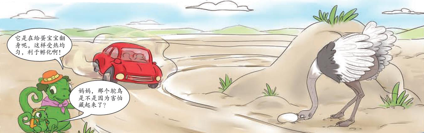 A:要是鸵鸟在遇到危险时只会把头埋进沙子里,那么它们在竞争激烈的自然界里肯活不长。实际上鸵鸟撒丫子跑起来的速度不比汽车慢,有危险时当然是“三十六计,走为上计”。鸵鸟会把头贴近地面,其实是为了找点昆虫改善伙食、吞些石头帮助消化或是其他原因,若是不仔细观察就会误以为它是害怕了才这么做的。