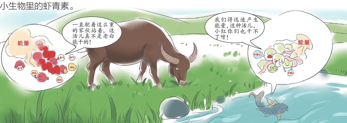 供持久的发力;后者通过肝糖元和氧气获取能量,还能进行无氧呼吸,能提供迅速的发力。牛因为长期站立,肌肉需要经常发力,肌肉里红肌蛋白更多,颜色就偏红;而鱼类在水中游动,时而转方向,时而加速度,经常需要迅速发力,肌肉里含有较多的白肌蛋白,颜色就呈白色。