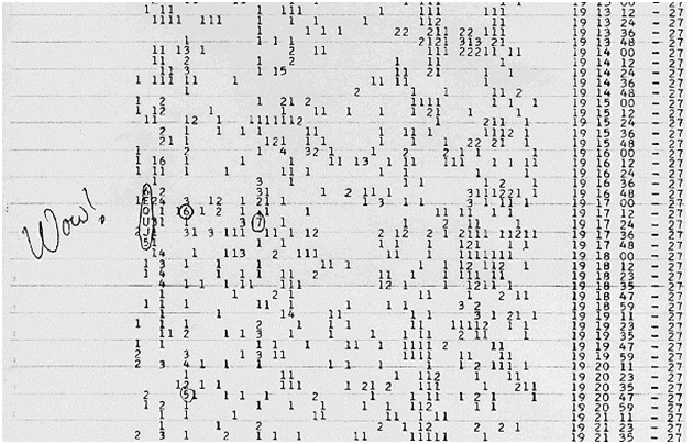 不过迄今为止,人类只发现了一个非常诱人的信号源。1977年8月,科学家杰里接收到一个持续时间为72秒的信号,他认为该信号不可能来自已知的天体,信号源也位于太阳系之外,因此它很可能是外星人发来的信息。杰里激动地在纸上写下了“Wow!”(哇!),让这个信号成为了著名的“Wow!信号”。