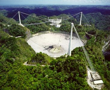 发电报 1974年11月16日,美国康奈尔大学的科学家利用阿雷西博射电望远镜对球状星团M13发出一封被称为“地球名片”的长达3分钟的星际电报。这封电报总共只有1679个数字,但发电报所用的电磁波能量却极其惊人。从发出电磁波的方向上看,这个信号比太阳光强1000万倍。