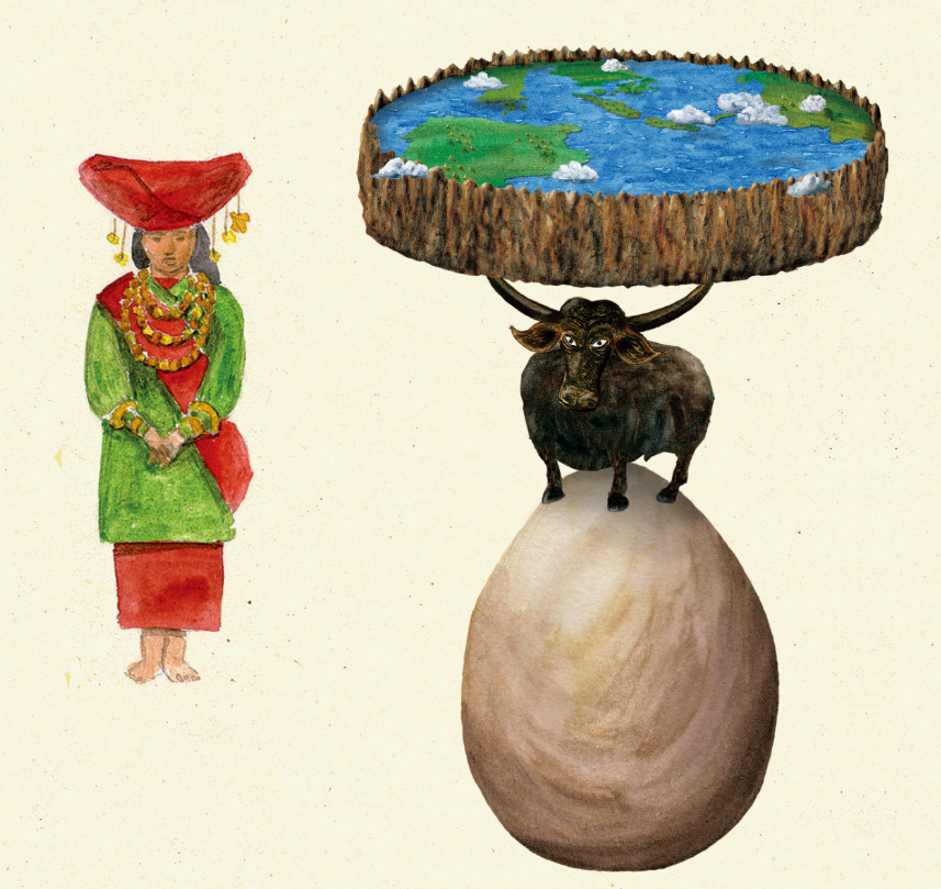 在非洲神话中,大地被一条巨蟒驼在背上,当巨蟒挪动身体时,大地就会震动;印度尼西亚的米南加保人认为大地被水牛用犄角顶着,水牛还站在一颗巨蛋上;西伯利亚的鞑靼人想象大地被一条鱼驼着;印度教徒则认为大地被四头大象扛在肩上,大象踩着巨龟,巨龟又踩着巨蟒。