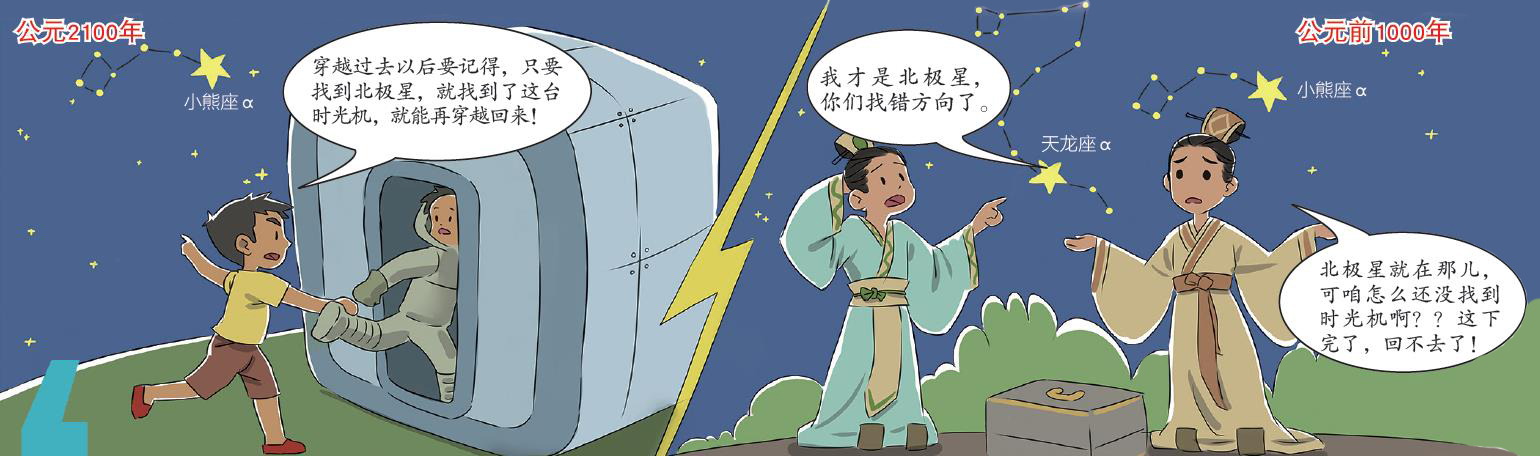 A:“北极星”更像是一个职位,哪颗星更靠近北天极(地球自转轴向北延伸,与天球的交点就是北天极),哪颗星就叫北极星。这是因为天上的星星并非静止不动,它们与地球之间的相对位置一直在发生变化,所以北极星不总是由同一颗星星担任。3000年前,天龙座α星是北极星;到了我们生活的这个时代,担任北极星的是“勾陈一”(小熊座α);而在10000多年后,织女星(天琴座α)将会肩负起北极星的职责。