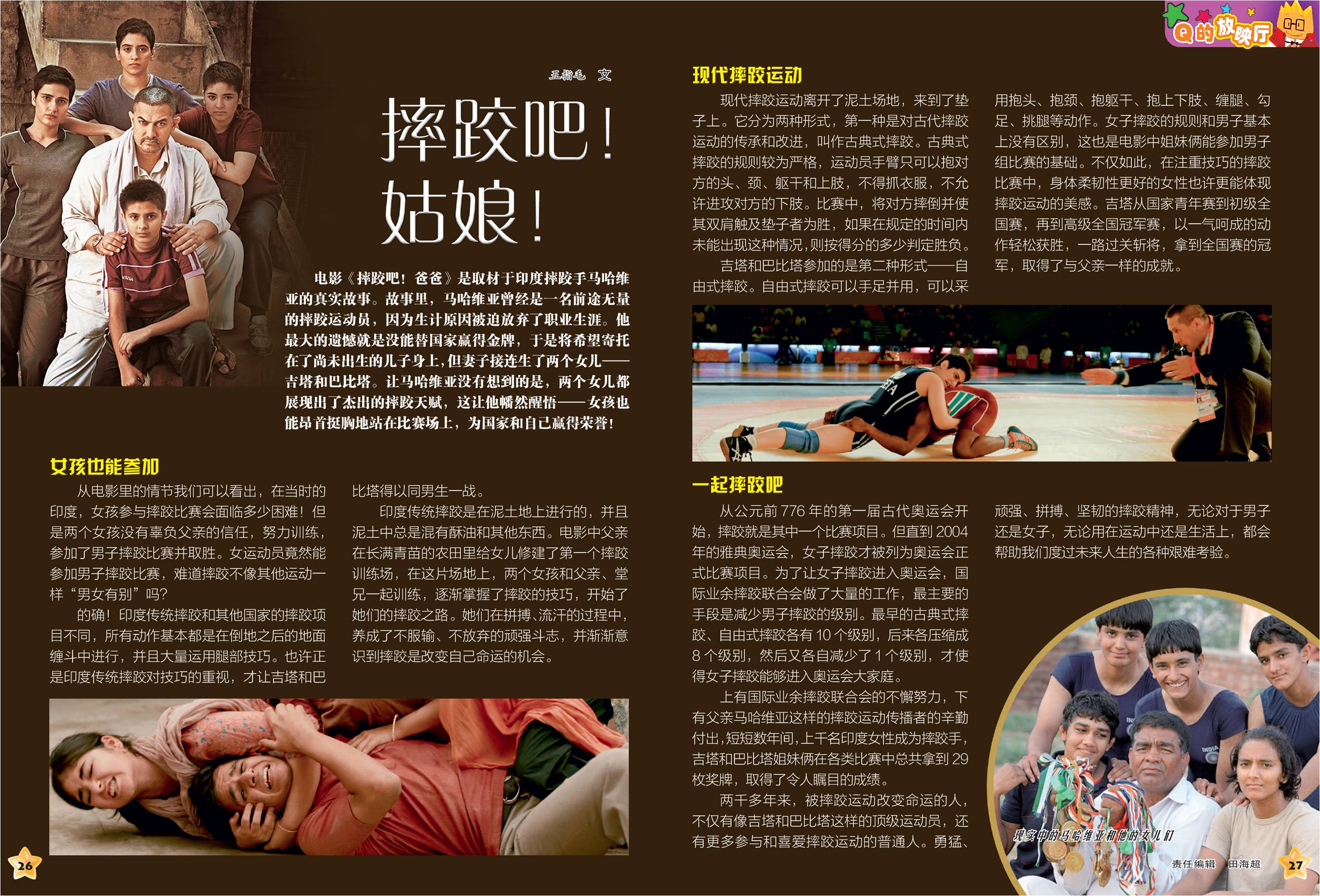 电影《摔跤吧!爸爸》是取材于印度摔跤手马哈维亚的真实故事。故事里,马哈维亚曾经是一名前途无量的摔跤运动员,因为生计原因被迫放弃了职业生涯。他最大的遗憾就是没能替国家赢得金牌,于是将希望寄托在了尚未出生的儿子身上,但妻子接连生了两个女儿—吉塔和巴比塔。让马哈维亚没有想到的是,两个女儿都展现出了杰出的摔跤天赋,这让他幡然醒悟—女孩也能昂首挺胸地站在比赛场上,为国家和自己赢得荣誉!