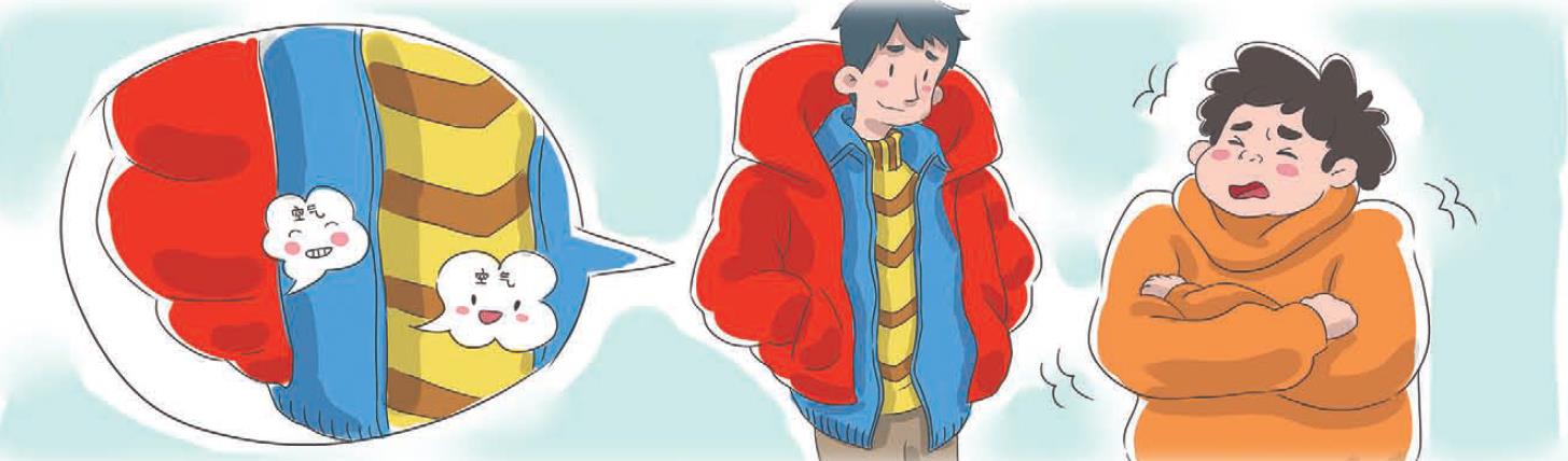 A:你也许不信,衣服并不能给你带来温暖。请你从衣柜里拿出一件衣服,放在沙发上。再拿一只温度计,记下温度,然后把它裹在衣服里。不管过几小时,你把温度计拿出来,都会看到它的温度一点也没有升高。这就证明衣服不能带来温暖。原来,衣服不是热量的源头,它只能阻止我们身体的热量跑到外边去。也就是说,热量是人体散发的,而衣服让人体散发的热量不流失,所以才能保持人体的温度。