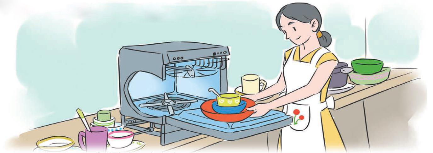 A:洗碗机内壁的上下方都设有喷头,工作时,它先用冷水冲洗食物残渣,然后用混合了清洁剂的热水对餐具进行多角度的强力循环冲洗。这种工作程序替代了手洗时的物理摩擦,只需要冲洗次数足够多就可以洗干净碗。但这也要求我们在洗碗机里摆放餐具时,要讲究一定的方法,才能避免冲洗不到某些死角。