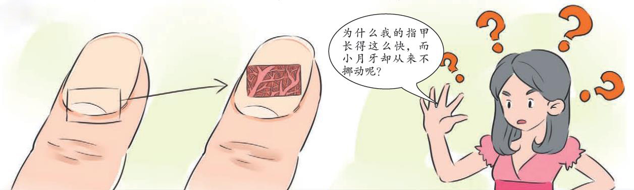Q:手指甲下部为什么会有一小块白色的月牙形区域?