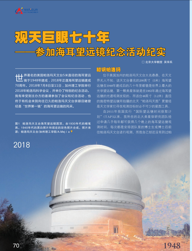 观天巨眼七十年——参加海耳望远镜纪念活动纪实