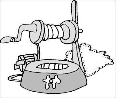 于是,一名学生就把另一只空桶系上,慢慢放入井底。稍停,就奋力摇起了辘轳。很快,桶被绞出了井口,大家一看,只有浅浅的半桶水。原来,水桶落入井底以后,往往先漂在水面,只有等它倾覆,涌进一些水后,它才慢慢下沉,完全浸入水中,只有这时,绞上来的水才是一满桶水。弄懂了水桶吃水的“原理”后,学生们慢慢摸索出了“门道”:当水桶落入水中后,就要将井绳放长,摇摆,以便使水桶尽快倾覆而吃到水,当水桶完全灌满水时,它会迅速下沉,将井绳突然拽紧,这时将水桶绞上来,准满。