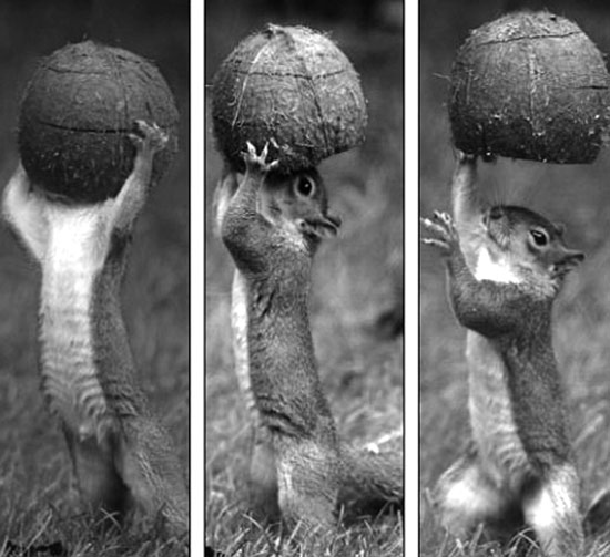 2009-12-15 09:30:03小编姐姐:2008年北京奥运会上,世界各国举重运动员的表现让人们见识了大力士的风采。如果为动物们举行一场奥运会的话,来自英国的一只小松鼠则当之无愧地会获得举重冠军——一名摄影师不久前在自家花园里就抓拍到了一只松鼠将比它体重多几倍的椰子壳“举”起来吃椰肉的照片。