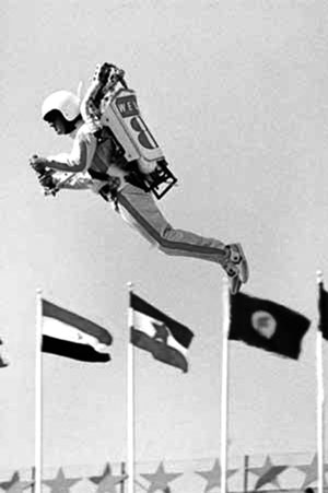在1984年美国洛杉矶奥运会的开幕式上,“火箭带”帮助“空中飞人”比尔·斯科特尔腾空而起,在十几米的高空中,以20千米的时速,从天而降,飞入体育馆。
