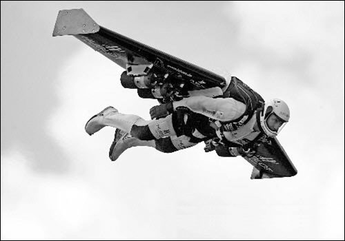 由于“火箭带”的飞行时间短得以秒来计,所以它只能出现在人们精心设计的场馆中,未能进入复杂多变的自然环境。瑞士前飞行员罗西自主研制的“喷气动力翼”帮助他飞过了高山,越过了大海,造就了广阔天地中的“火箭飞人”,实现了科幻小说的预言。
