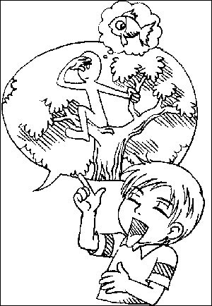 中午,朴朴和小七一起去学校食堂吃饭。路上,小七问道:“朴朴,你知不知道‘缘木’是什么木头?”“‘圆木’?圆圆的木头呗。”“不是那个‘圆’,是‘缘分’的‘缘’。”小七翻开手中的《作文选》,指着一句话:“想要事业成功,却只靠烧香拜佛,这无异于缘木求鱼。”小七接着说:“我知道‘缘木求鱼’是指爬上树去捉鱼,比喻办法不对,徒劳无功。可是按照这个意思,我觉得应该是‘攀援’的‘援’啊。又或者,‘缘木’其实是种树?”“‘缘木’?没听说过。难道里面有什么典故吗?”朴朴也有了兴趣,于是建议小七:“咱们去问大孙老师吧。”