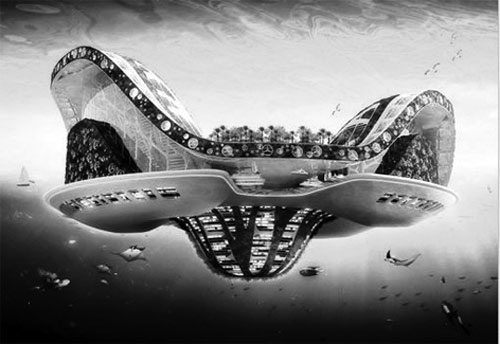 这座为了防范全球气候变暖导致海洋洋面上升淹没沿海城市而建造的海上之城,是一个自给自足的智能型生态人工岛,使用的是太阳能、风能、潮汐能等绿色能源,而在它的水下部分则养殖有大量的海洋浮游生物和植物,用它们来吸收分解生活垃圾和二氧化碳,并转换成有用的氧气和电力。更令人神往的是,由全透明材料制成的水下外壳,竟然可让居民在水下餐厅一边进餐一边欣赏海底美景,在“陆地生活”和“海底生活”之间自由切换。