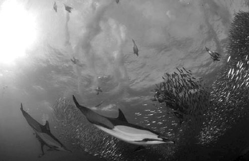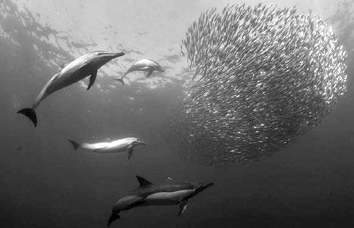 海豚、鲨鱼、鸟类甚至逆戟鲸对沙丁鱼群都有自己独特的捕食策略。