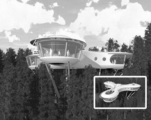把房子建在大树上?这个想法很妙啊。未来派树屋“高傲”地凌驾在森林之上,端坐树的枝头,让人视野开阔,心旷神怡,更重要的是它节约土地呀。在设计上,未来派树屋采用模块化结构,也就是用轻质的材料一块块地组装起来,建这样的房屋只需要短短几周。房屋四周墙壁全透明的设计,采光度很好,节能又环保。