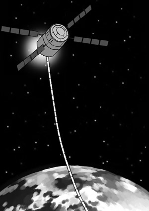 终结绳索:它是一条长度为5千米的细导线,被绕成一个线圈放置在卫星内部。当卫星达到指定位置后,“终结绳索”便会自动打开。在电离层和地球磁场的共同作用下,这条绵延达5千米的导线上可产生持续的电流。更奇妙的是它能牵动卫星逐渐下落到大气层并完全烧毁。