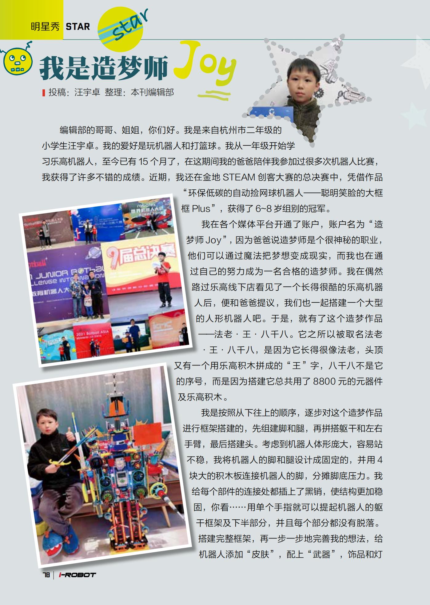 《爱上机器人》杂志是由中国科协主管,中国通信学会、人民邮电出版社主办,中国工信出版集团北京信通传媒有限责任公司出版的原创机器人技术科普杂志,主要面向青少年,以“激发探索兴趣,掌握科技之钥”为宗旨。