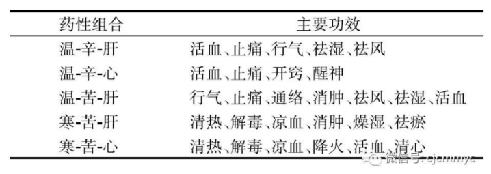 数年前就有学者提出“药性组合”的概念,指出药性组合模式是具有相同或相近功效的多个药性组合间的配伍特征。