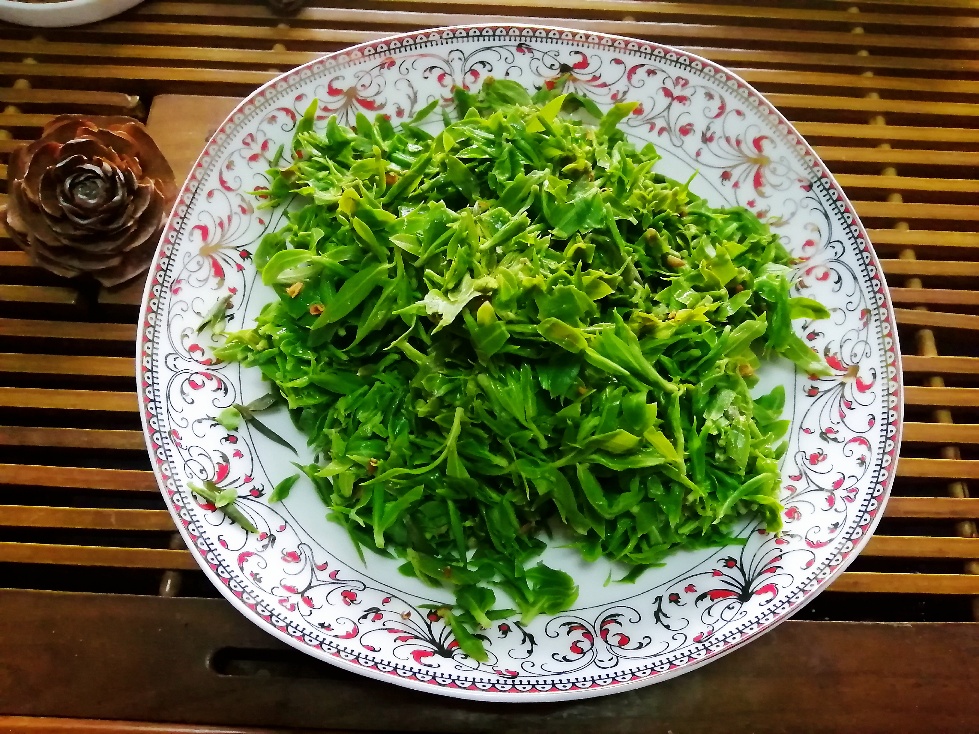 凉拌柳芽属鲁菜,我们那地方的名菜,也是各饭店的特色菜。青绿鲜嫩,味美爽口。