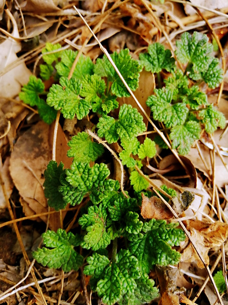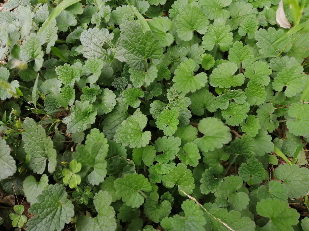 在万年青的根部周围,有一片与众不同的、毫不起眼的、绿油油的野草。植株矮小,几乎匍匐在地,抱团生长。叶子秾茂,心形,亦如铜钱草状,皱皱巴巴、对生锯齿。在叶子中抽出细瘦而扭曲方柱形茎叶,质脆易折断且断面中空。五六月份开着淡雅的紫色小花,清风拂来宛若蝴蝶翩翩起舞。搓之气芳香,味微苦。