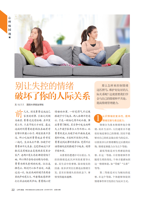 本文来自《心理与健康》