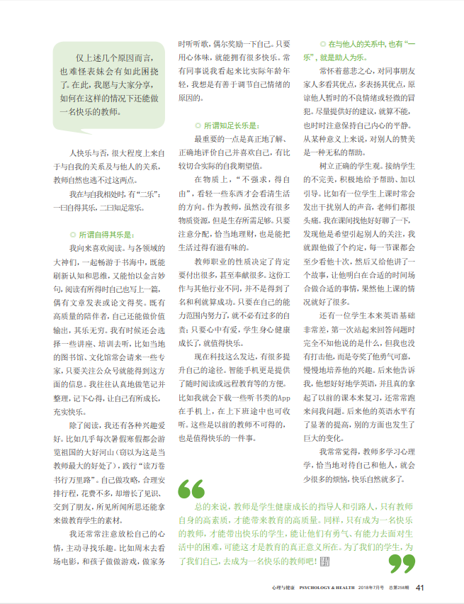 本文来自《心理与健康》