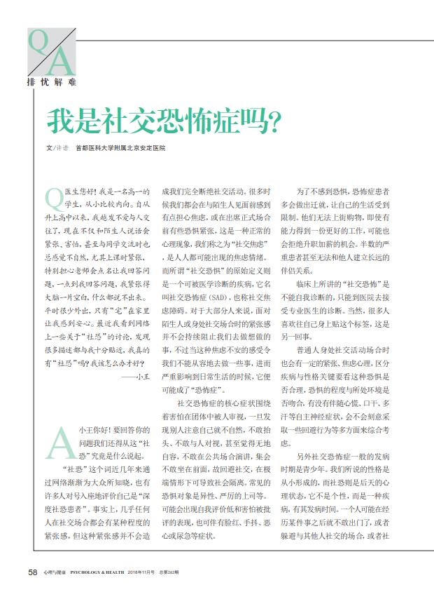 本文来自《心理与健康》